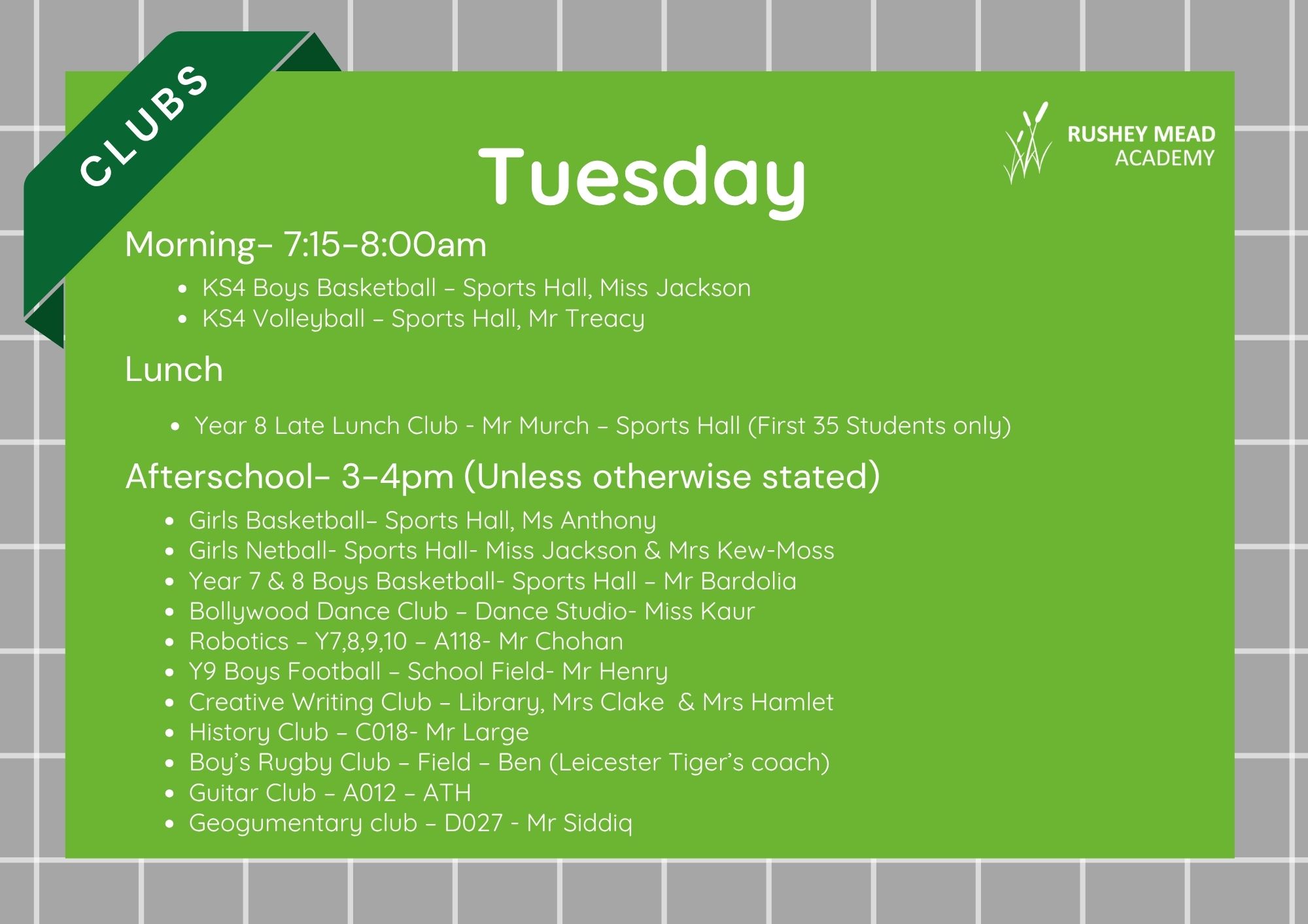 Rushey Mead students have a wealth of clubs and extra-curricular opportunities to choose from. These activities are not only fun but also a great way to develop friendships with others. The large variety of clubs at Rushey Mead develops many skills in our students, including leadership, team building, organisation and problem solving, to name a few.