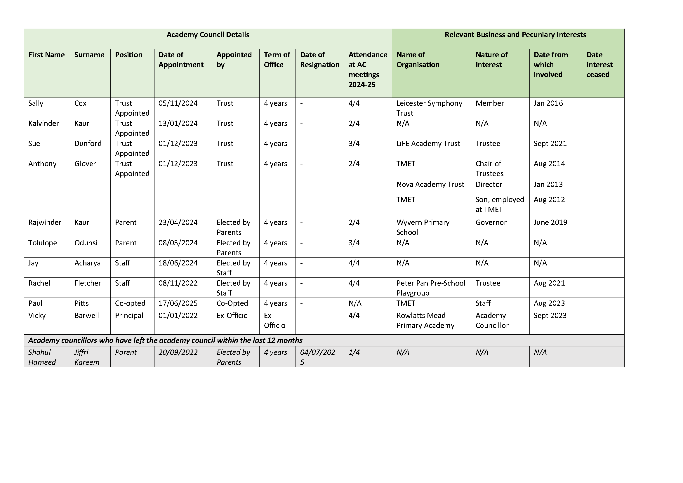 The Academy Council holds the Principal and school senior leadership team to account for the educational performance of the school and its pupils.